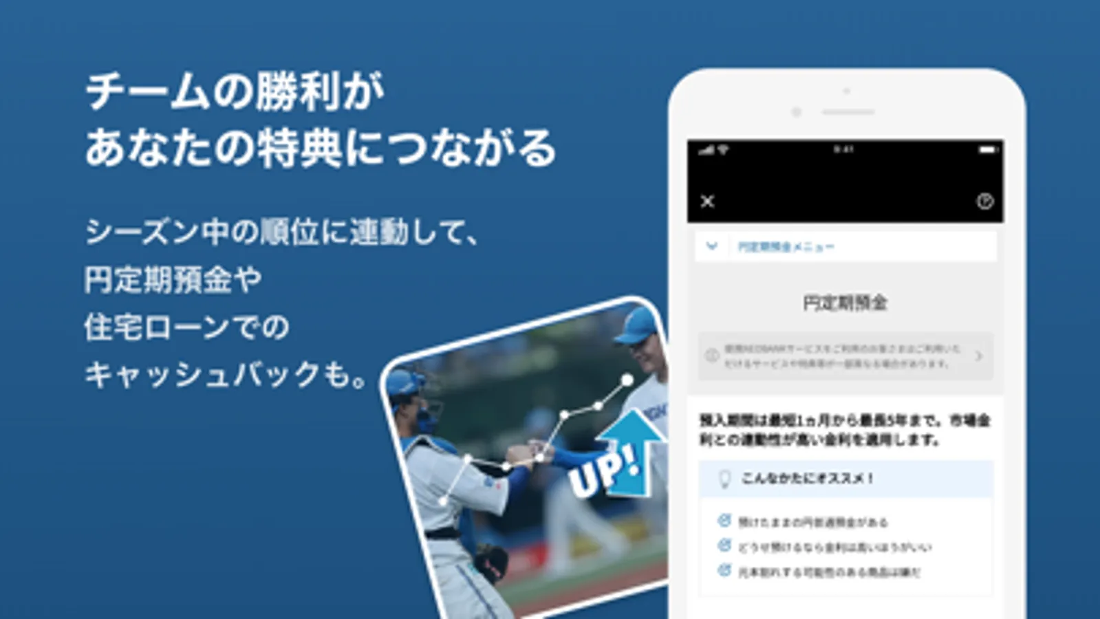 ◆シーズン中の順位に連動して、円定期預金や住宅ローンでのキャッシュバックも。