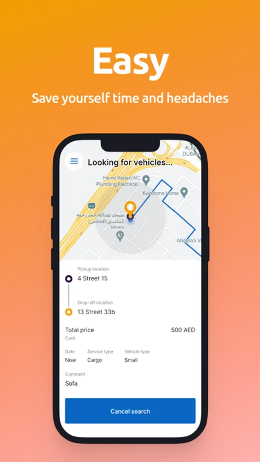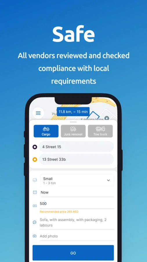 Carriers can be junk removal, cargo, or tow-truck. The shippers can place orders for the required carrier by providing some information.