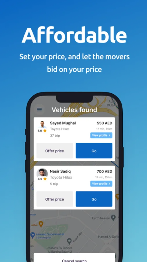 Onemove is a mobile application with two types of users: shippers and carriers.