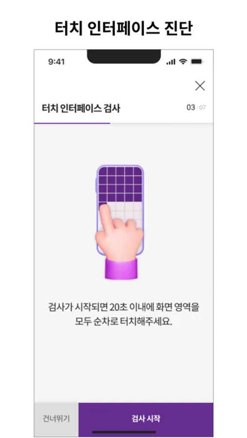 3. 일부 검사는 직접 화면을 터치하시거나, 결과를 직접 입려 해 주셔야 합니다.