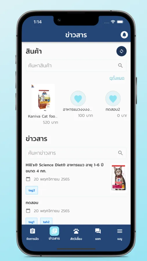 - สามารถดูข่าวสารและสินค้าของทางโรงพยาบาลสัตว์ได้