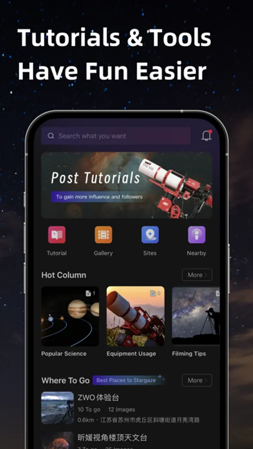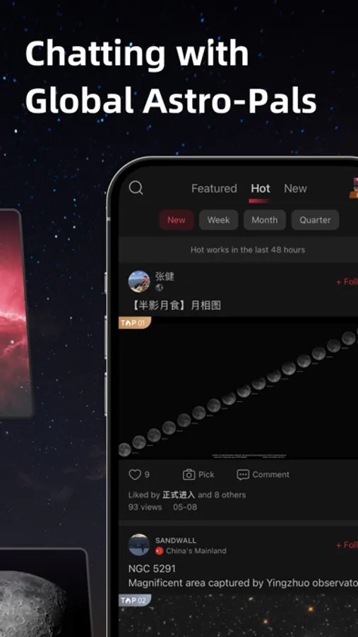 Additionally, the platform offers information on stargazing spots and the Light Pollution Map, along with other assistive tools to enhance your photography experience. You can view nearby works, and connect with astro-pals to chat and explore the mysteries of the universe together.