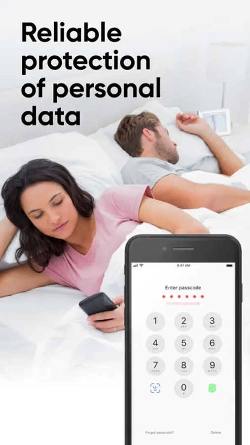Keep your communication protected with private passcode. Set a passcode or connect Face ID / Touch ID to secure your chats and text messages.