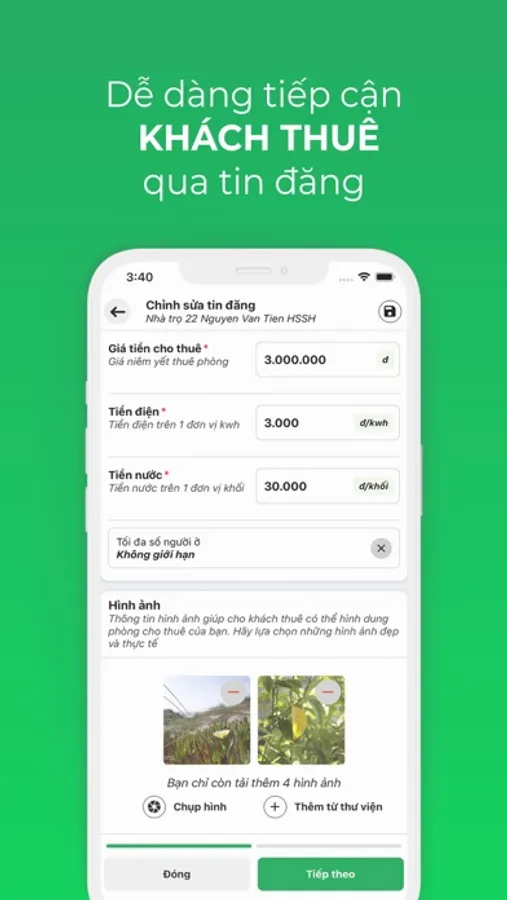 - Đăng tin: Không chỉ giúp khách thuê nhanh chóng tìm được phòng trọ ưng ý mà ứng dụng còn giúp chủ nhà tìm được “khách hàng” của mình. Ứng dụng hỗ trợ người dùng đăng tin cho thuê phòng trọ, đăng tin tìm người ở ghép, hạn chế tình trạng phòng trọ bị bỏ trống trong khi khách thuê vẫn chật vật tìm kiếm.