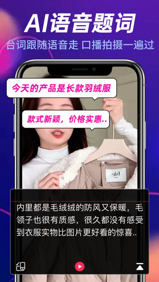 智能提词:语音自动提词,根据语音自动匹配提词进度,拍摄视频不用记台词;