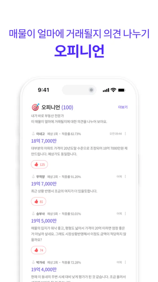 ▶ 자유로운 거래가격 예상을 나누는 ‘오피니언’