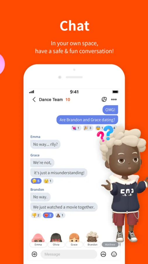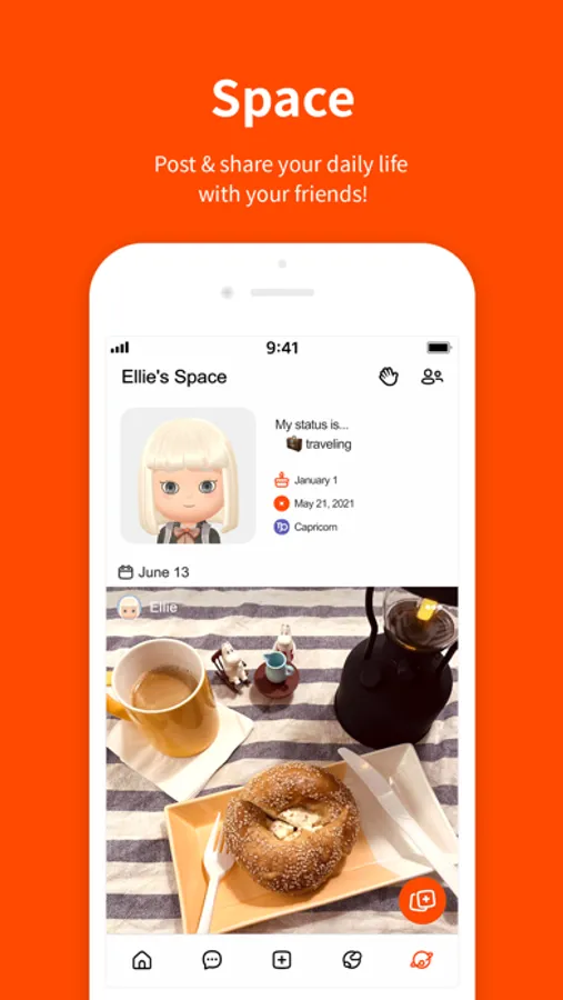 • Share the good, the bad, and the ugly parts of your day with images, texts, and interactive motions from your avatar.