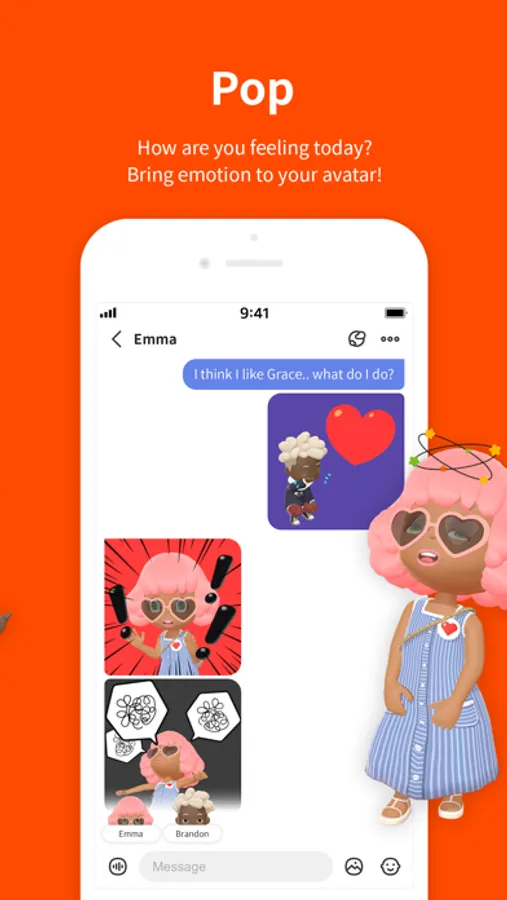 • Whatever the emotion, let your friends know exactly how you feel with “Pop”.
