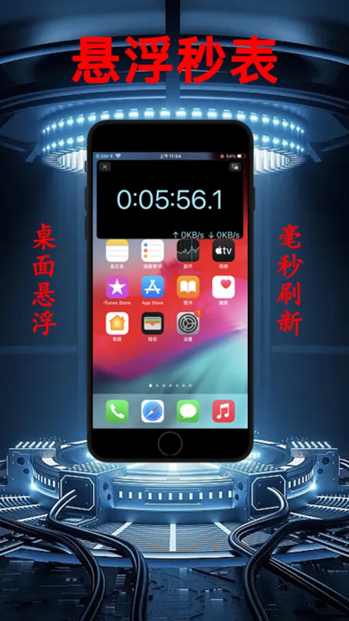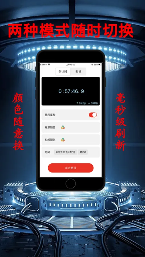 多种规格的悬浮窗可悬浮于任意界面,显示毫秒级的系统时间。