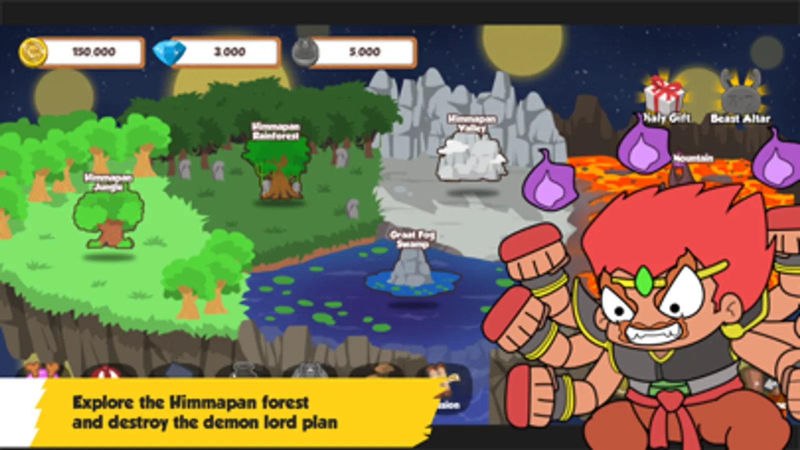 When the Demon Lord from Hell has an evil plan to take over the human world. So he came to gather all creature animals in the Himmapan Forest to serve as soldiers. Only a group of small creatures survived. Join forces to thwart the Demon Lord and bring your friends back.