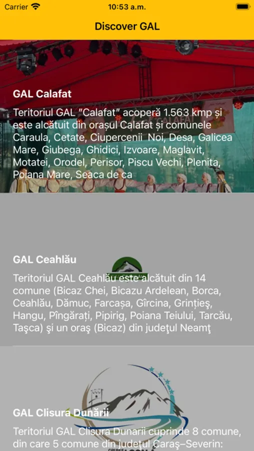 Descoperiți locuri din: GAL Calafat, GAL Ceahlău, GAL Clisura Dunării, GAL Microregiunea Țara Hațegului - Tinutul Pădurenilor și GAL Poarta Almajului