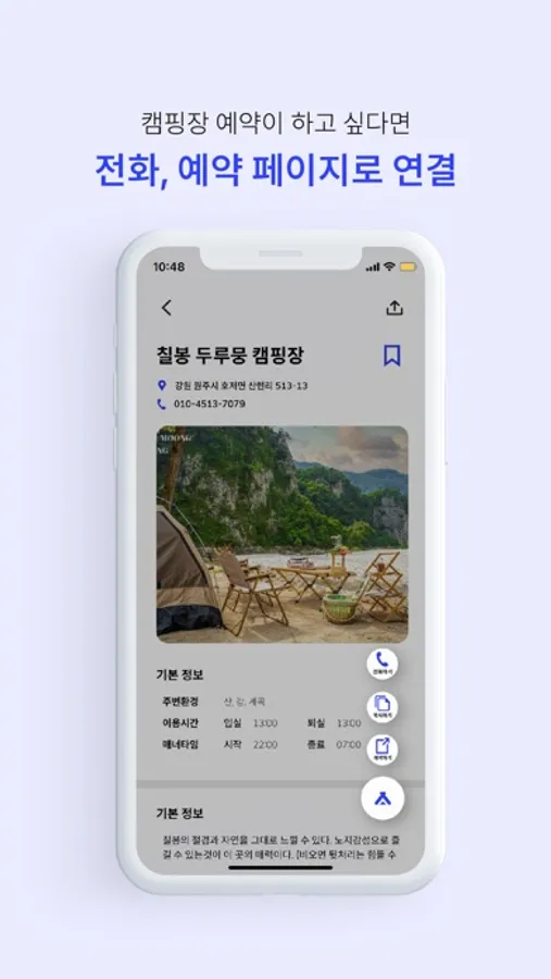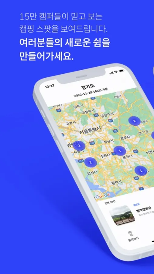 캠핑장 및 차박이 가능한 노지 등 새로운 캠핑 장소를 탐험하세요.