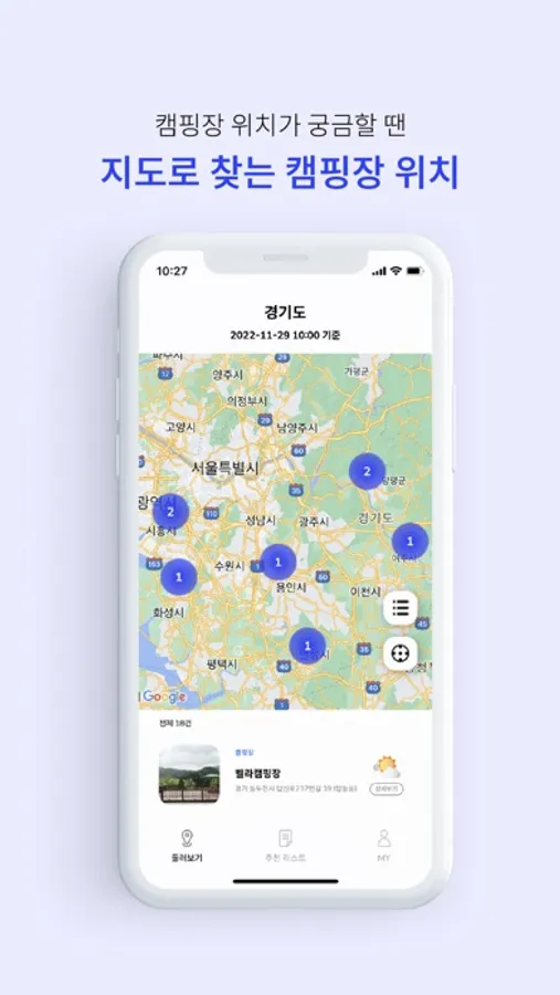 지도와 지역별 분류장소를 이용해 캠핑클럽이 추천하는 장소를 손쉽게 만나보세요.