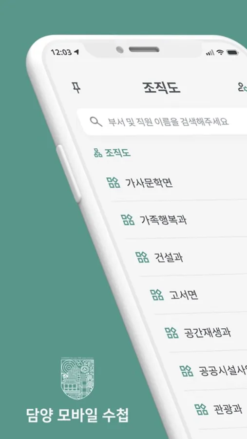 담양모바일수첩은 담양 군민과 군청 내 직원 모두가 조직도에서 담당자를 손쉽게 찾을 수 있도록 검색 및 즐겨찾기 서비스를 제공하고있습니다. 많은 이용 부탁드립니다.