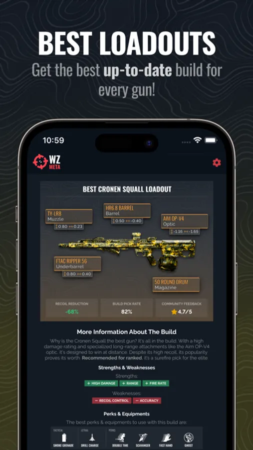 Warzone Meta is more than just an app - it's a community. Stay connected with all the latest news on the Warzone meta, the best Warzone loadouts, and the Warzone best guns. Stay informed, stay ahead, and secure consistent victories with Warzone Meta.