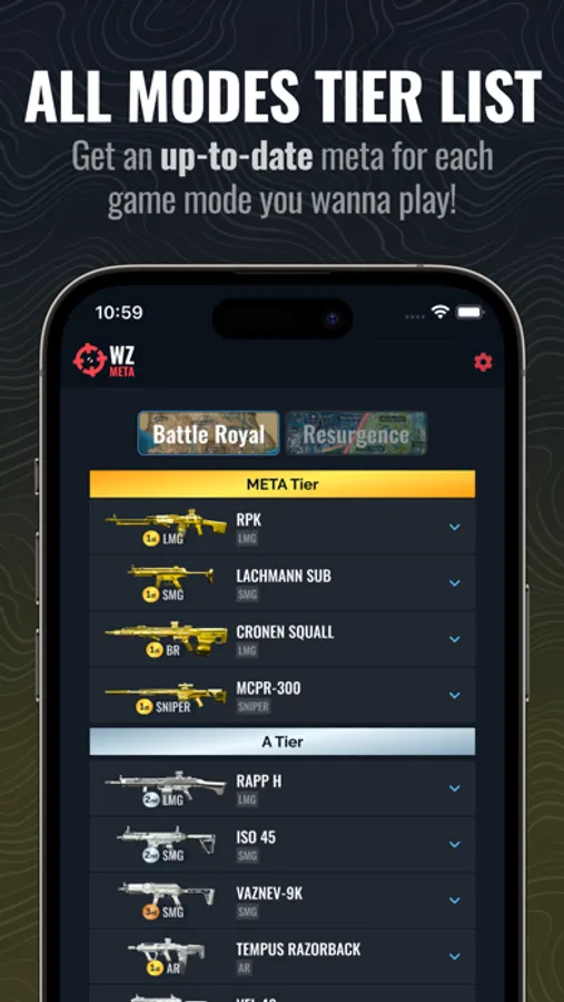 Embrace Warzone Meta, your essential companion for top-tier Warzone gameplay. Our app offers you the latest Warzone loadouts, daily updates, and expert gaming tips, all tailored around the Warzone best guns. Get set to dominate the Warzone battlefield like you've never imagined.