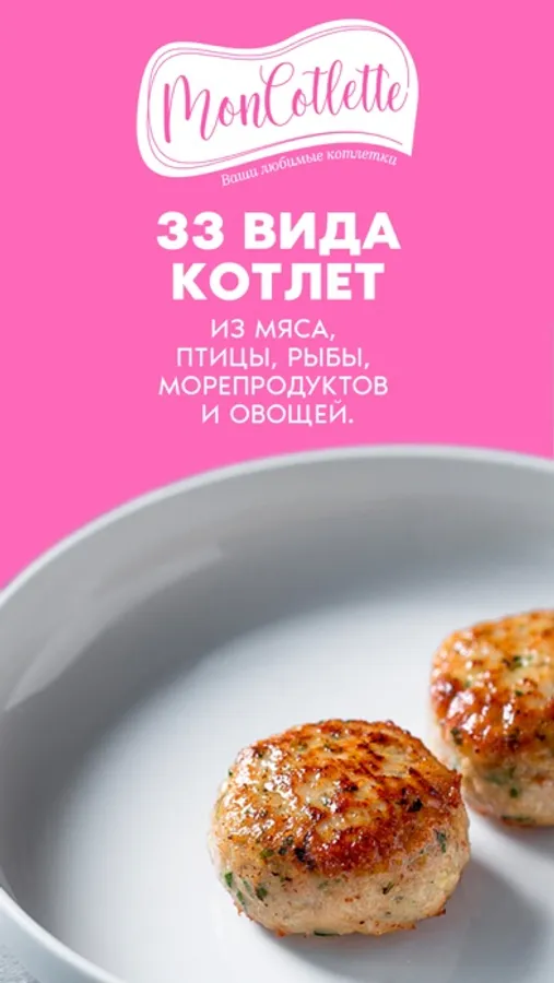 33 вида котлет из отборного мяса, птицы, рыбы, овощей и морепродуктов приготовленные с настоящим ресторанным качеством можно заказать с доставкой на дом!