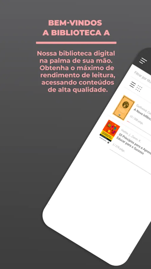 Este é o aplicativo de leitura de ebooks da Plataforma A (+A Educação). Nossa biblioteca digital reúne os selos editoriais: Artmed, Artes Médicas, Bookman, Penso e SAGAH. Professores, alunos e colaboradores poderão ter acesso rápido, onde e quando precisarem. São mais de 2700 títulos disponíveis, em diversas as áreas do conhecimento, desenvolvidos por grandes autores nacionais e estrangeiros. Leia nossos conteúdos utilizando as ferramentas de apoio da solução, como: buscas por palavras-chave, criação de destaques e notas, favoritos, ajustes de texto (tipografia, tamanho, entrelinhas e alinhamento), entre outros recursos.