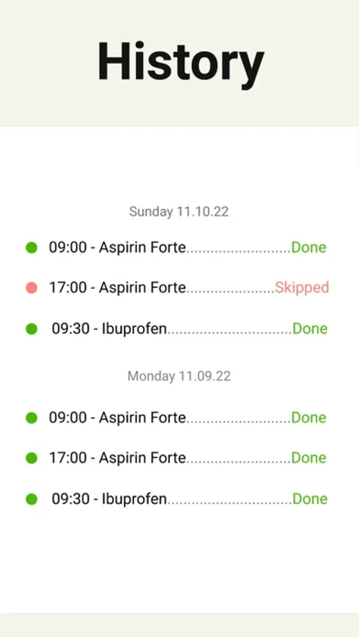 You can skip taking the pill by pressing the dedicated button. All information on taking and skipping pills will be displayed in the app history