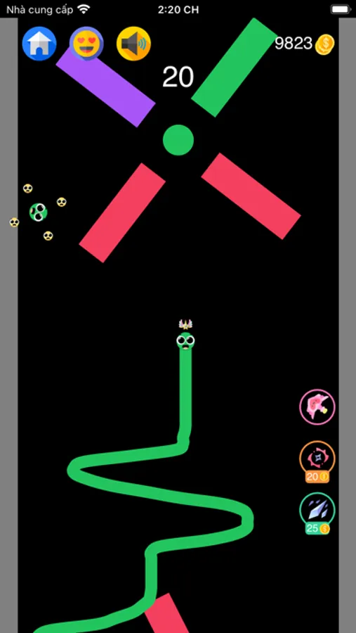Color Emoji is the famous obstacle snake game on mobile. The game requires players to have quick reflexes and dexterity to overcome obstacles. It doesn't take too long for the player, depending on your hand, all for the sake of breaking records and winning coins. Players can customize the face symbols according to their preferences if they earn enough coins. Besides, the game has more skills for players to choose from such as: defense, attack and even respawn.