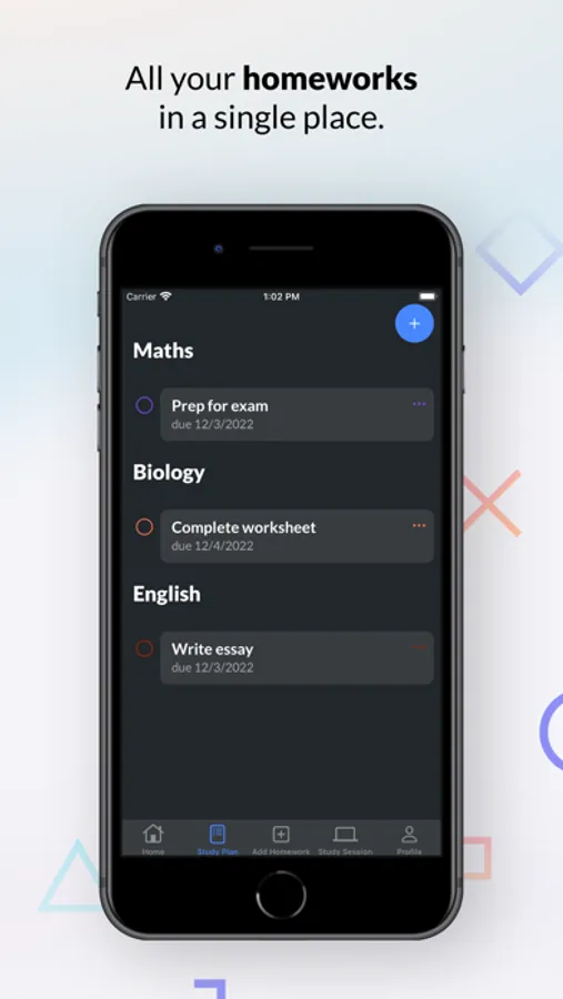 - Keep track of all assignments, homeworks and deadlines with our easy-to-use planner. Add your homeworks with a few clicks. Get reminders for any upcoming deadlines. All your school work in a single place and always at hand. Easily track and complete your assignments throughout the week.