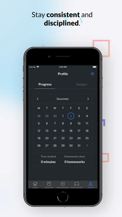 Studying is no different. Push will reward you for progress, discipline and commitment. Complete study sessions and get rewarded. When you see yourself making progress, you will be more motivated you to commit to a study schedule.
