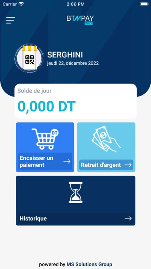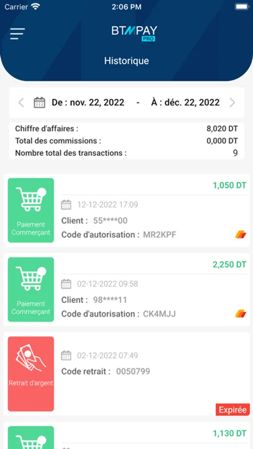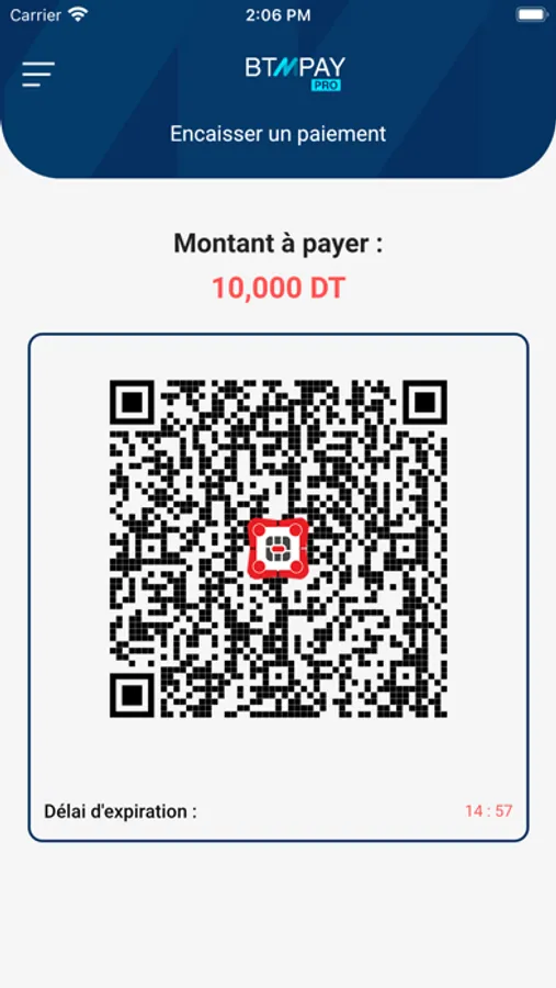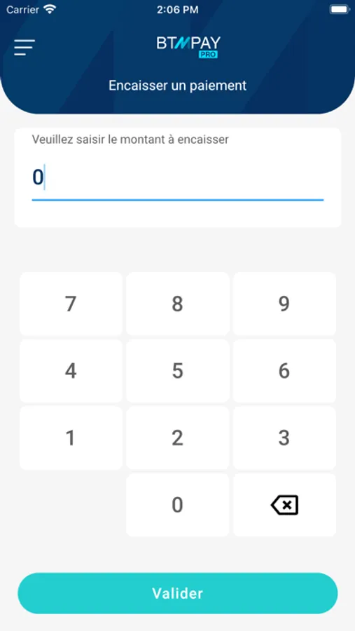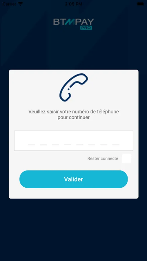 Pour bénéficier de tous les avantages de cette application, vous devez au préalable être inscrit au service BTMPAY PRO via l'application.