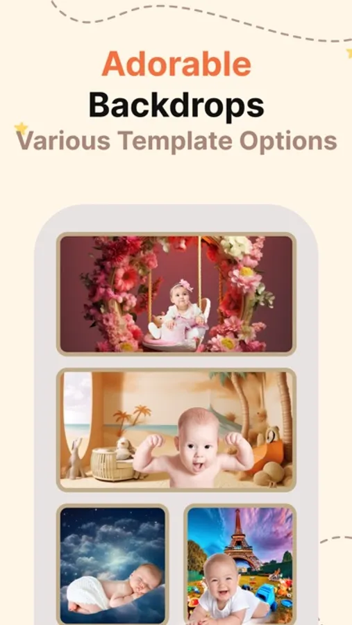Miracle baby app creates adorable pictures of your baby and you and replaces the background with cute themes automatically by cutting-edge artificial intelligence. So, you can automatically remove the background from your newborn’s photos and insert beautiful themed backdrops for them.