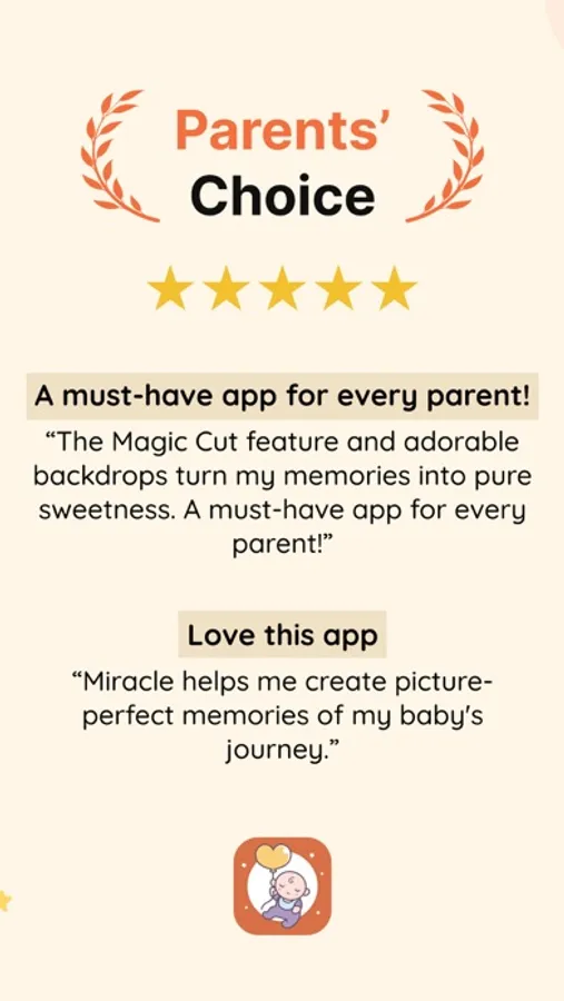 Create beautiful visual stories throughout your pregnancy journey and your baby's first weeks and months with Miracle: Baby Photo Editor. This way, you can have adorable pictures, and keep track of your baby's growth and milestones simultaneously.