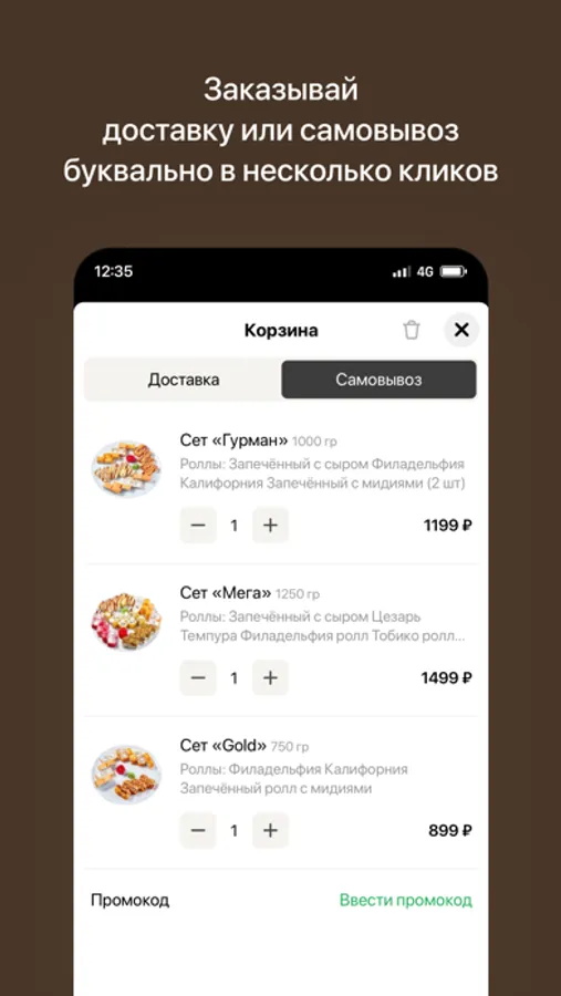 — Быстрый заказ с мгновенным подтверждением через приложение.