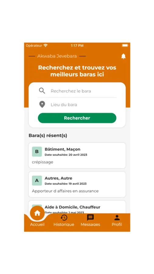 Postuler à un bara : Tout utilisateur de l’application a la possibilité de postuler à un job qui correspond à sa catégorie de Bara.