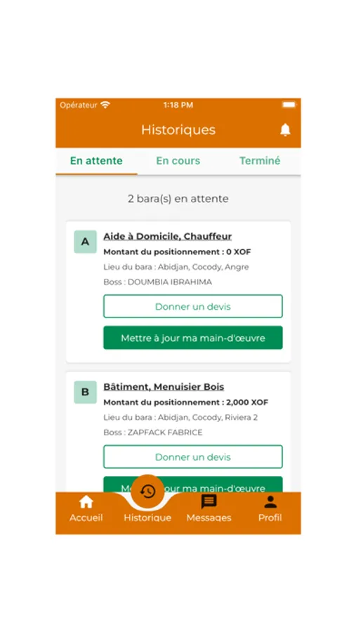 Poster un bara : Tout utilisateur présent sur l’application avec le statut de Boss a la possibilité de poster un Bara en fonction du besoin qu’il possède.