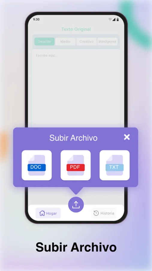 Nuestra aplicación de reescritura de texto le ofrece la comodidad de usarla con la opción de carga de archivos. Esta herramienta le permite cargar archivos TXT, DOC, DOCX y PDF desde el almacenamiento local.