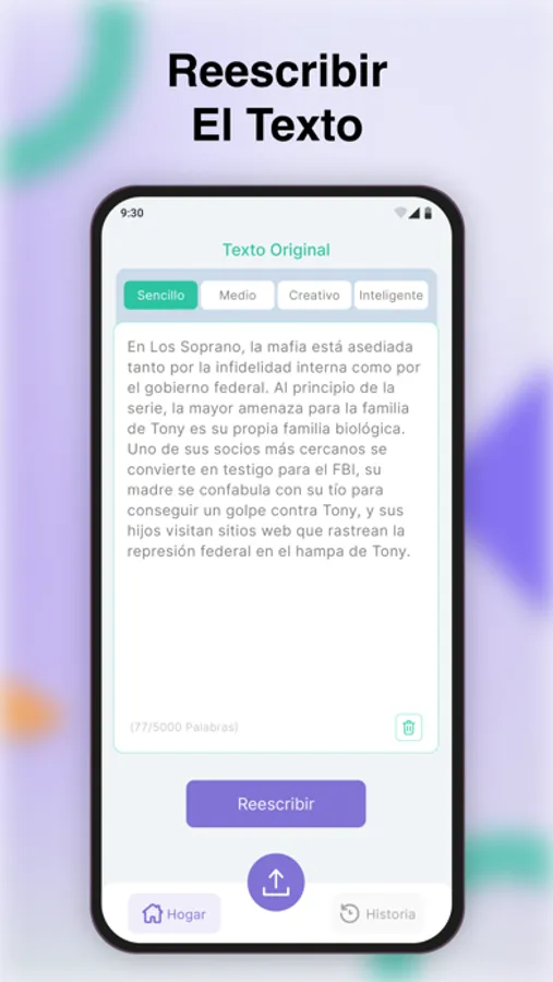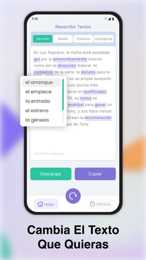 La aplicación de Reescribir Textos le permite reescribir artículos, tareas y otros documentos conservando su significado original. Reescribe el texto en cuatro modos diferentes y hace que su texto sea fácil de leer con menos esfuerzo.