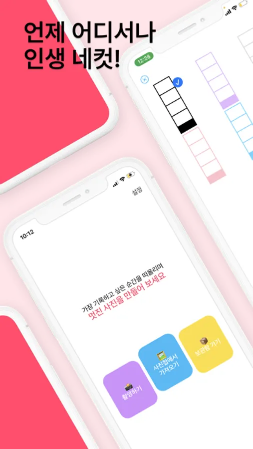- 언제 어디서나 사진을 즉석에서 촬영하여 인생 네컷을 만들 수 있습니다.