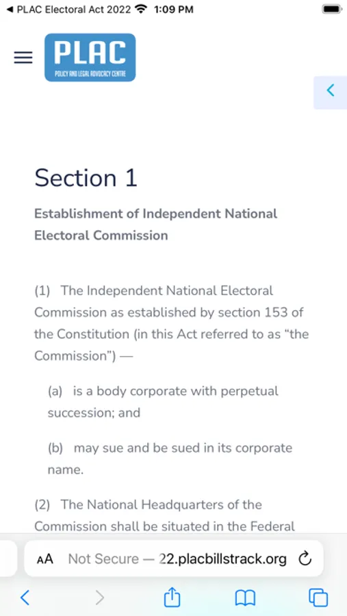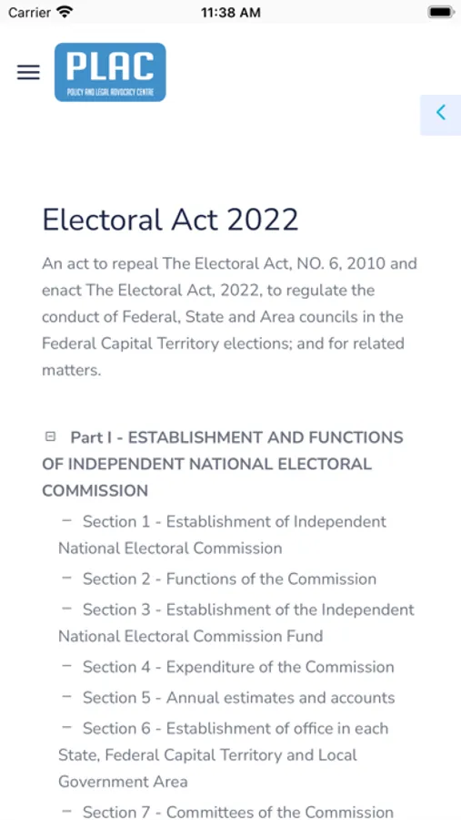 This app contains the complete text of the Nigerian Electoral Act passed in 2022. The Act is a federal legislation that outlines the procedure for conduct of elections in Nigeria. It contains simplified explanations for every section of the law, relevant court decisions that interpret the provisions and demonstrate its practical application, as well as reference to additional reading material for researchers.