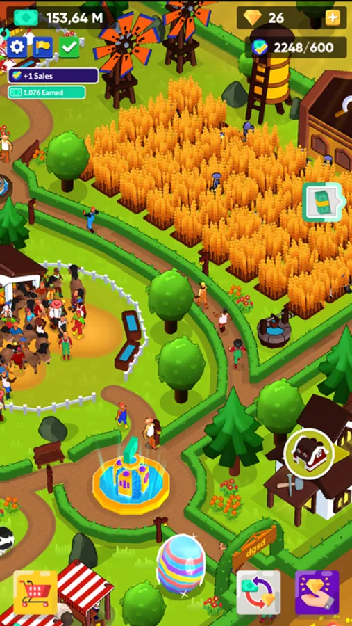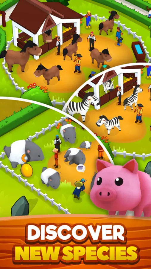 Although this is a business which centers pets love, you should still grow your business and make a lot of money to keep things working. By making enough money you can have more animals and discover new species. And this are all your responsibilities. You will have idle income both in game and offline. There will be customers who want to help your farm and they will throw money to wishing fountain and you can collect this idle money to improve the life quality of your pets.