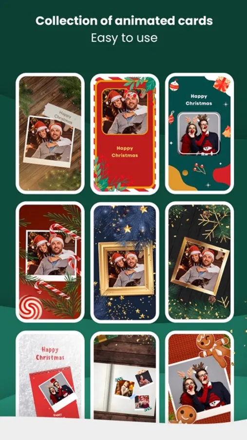We offer you different Christmas ecards with free animated Santa Claus templates. Everything you need to create stunning stories is here. Find beautifully designed animated greetings and share with your friends. Greeting cards maker app is packed with stickers, templates, and animated videos to help you create high-quality stories content. Our video editing features are simple and can help you create video collages and add text and turn your photos into gif video with just one click!