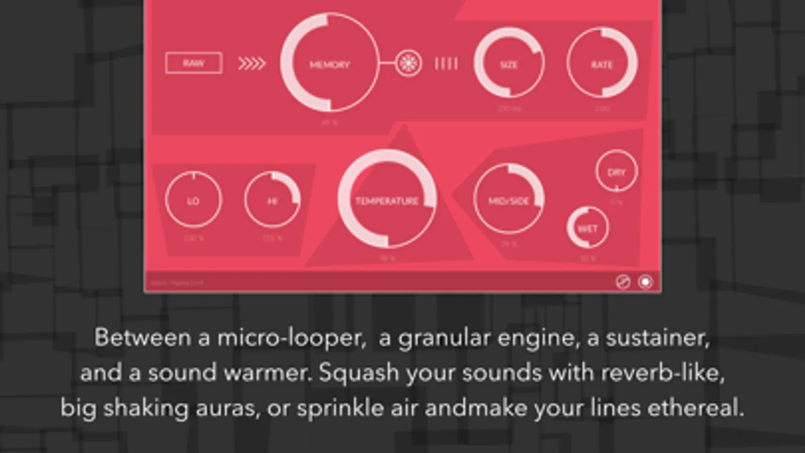 At the very crossroad between a micro-looper, a granular engine, a sustainer, and a sound warmer, Magma can squash your sounds with reverb-like, big shaking auras, or sprinkle air and make your lines ethereal.