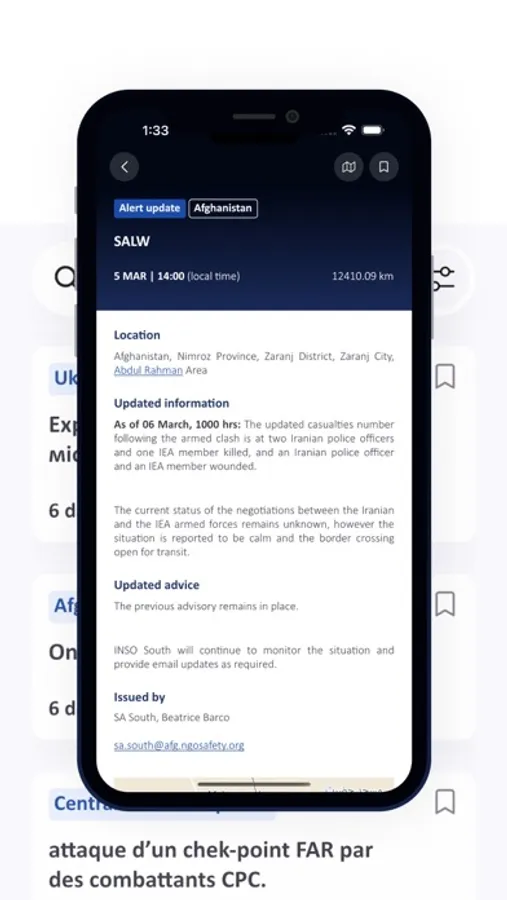 Discover INSO's alerts rolled into an easy-to-use application, where you can explore the map to visualise INSO’s alerts and search according to your location or area of interest. This app is available in English and French.