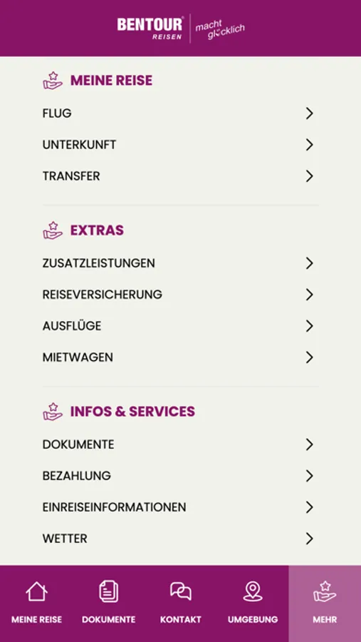 Die myBentour-App bietet Ihnen hilfreiche Informationen und herausragenden Service vor und während Ihrer Reise mit Bentour – alles ganz einfach und aus einer Hand: