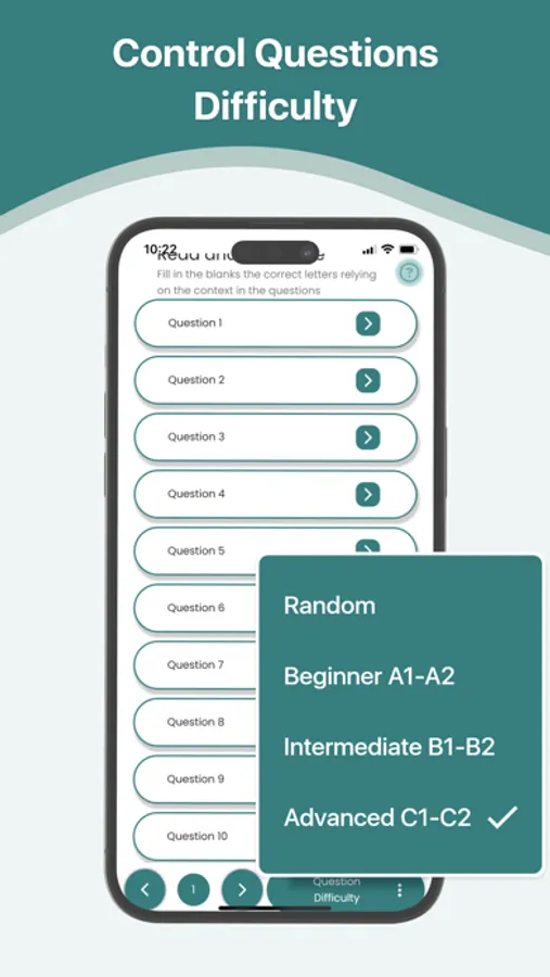 While practicing, you can change the difficulty level and practice with the beginner, intermediate, or advanced difficulty levels.