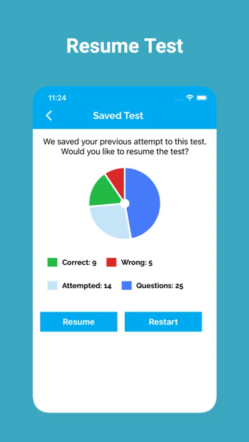 App tracks the users completed practice tests. The app tracks their progress, allowing them to identify areas for improvement and track their overall progress.