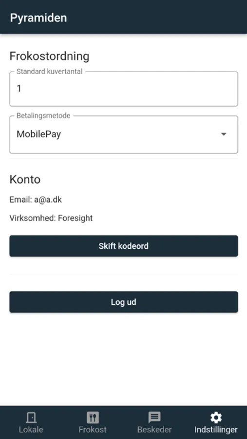 Mødelokalebooking, frokostordning m.m. i kontorhotellet Pyramiden.