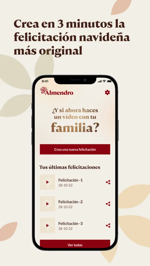 Con la aplicación de El Almendro podrás hacer una felicitación navideña con tus recuerdos. Crearás un vídeo 100% personalizado y con las imágenes más entrañables. Además, ¡podrás compartirlo con los tuyos!