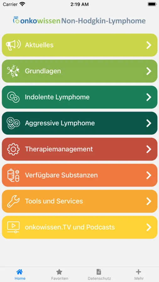 Diese App ist nur für Fachkreise mit einem onkowissen.de-Login bestimmt. Sie dient ausschließlich als Informationsgrundlage für die Behandlung von Non-Hodgkin-Lymphomen.