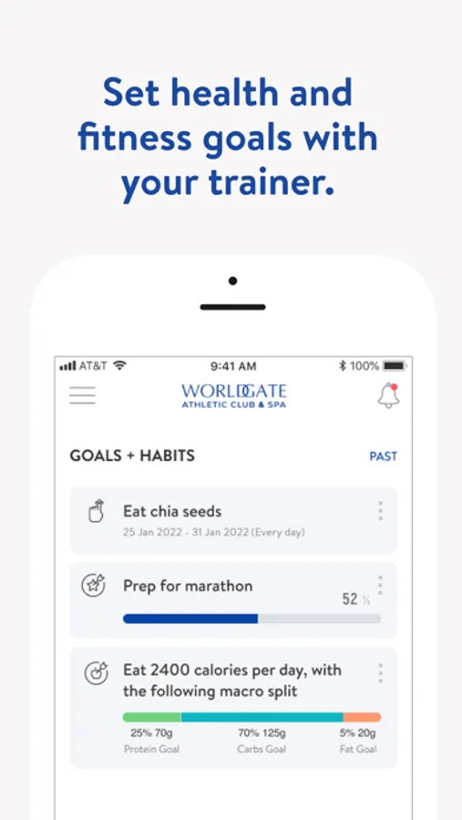 With the Worldgate Athletic Club + Spa app, you’ll enjoy a full spectrum of fitness programs and wellness coaching designed to help you transform habits and reach your goals. Our app doesn’t just offer workouts, it’s a uniquely balanced approach to living well through movement, nutrition, recovery, and self-care. Tap into one-on-one coaching from our virtual personal trainers, curated wellness and recovery programs, and on-demand group fitness classes. As you progress, we’ll keep track of everything for you right in the app. Above all, it provides both the information and the motivation to get you on the path to maximizing your overall wellness potential.