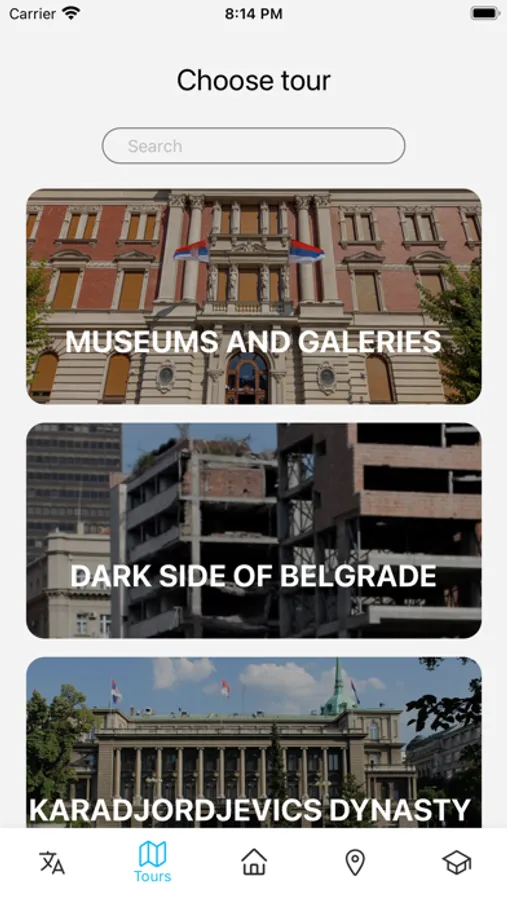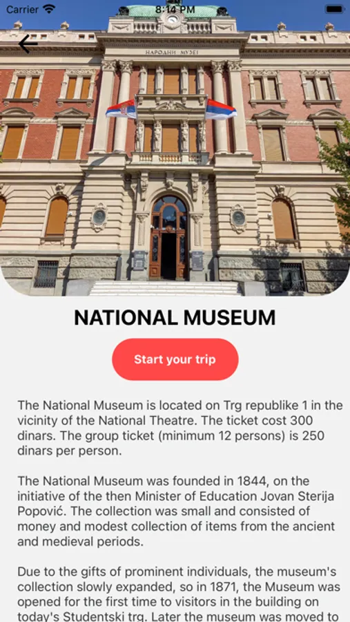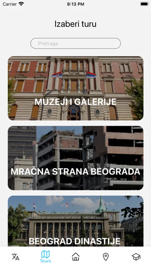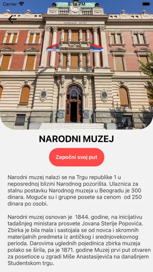 Our app offers themed tours covering historical eras and different communities that have left their mark on the city's heritage. This guide takes you through Belgrade in a simple way and provides reliable information about various phenomena in Belgrade. When you choose the offered tour, you will easily move from one place to another, and find out the most important information. You can also select individual objects and get information about their history. Our guide is unique, because it is part of the BELGRADE ADVENTURE school project, and therefore free and non-commercial
