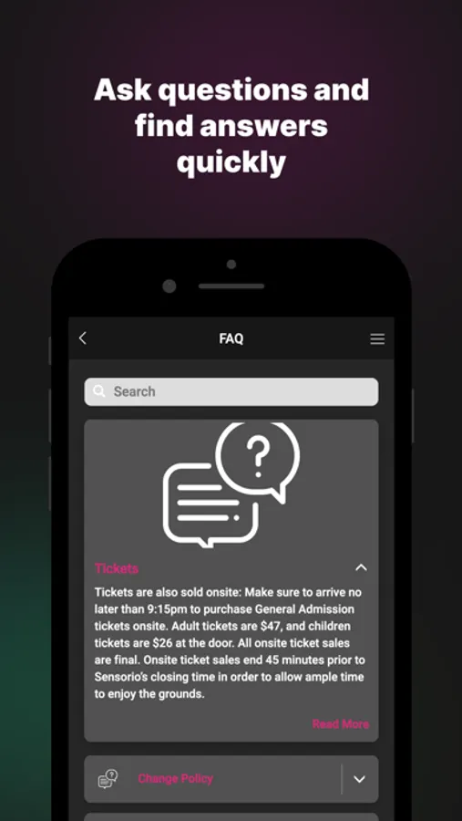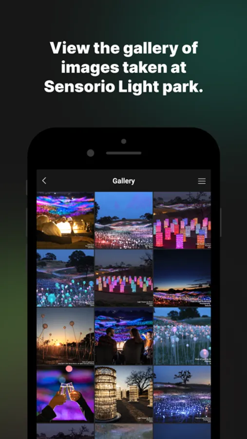 Our goal is to create a more informative and interactive experience while visiting Sensorio. Our app features merchandise items, food and beverage menus, photo galleries, and more. We plan to update our App to keep our visitors in the know with what's to come.