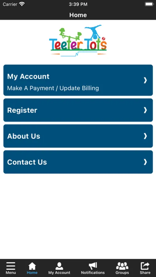 The Teeter Tots app allows you to access our programs and manage your Parent Portal Account with ease, register for classes, parties, practice times, special events, and more. You'll also receive important notifications about class changes, weather related closings, registration openings, special announcements, and upcoming events. Never miss an announcement or update again!